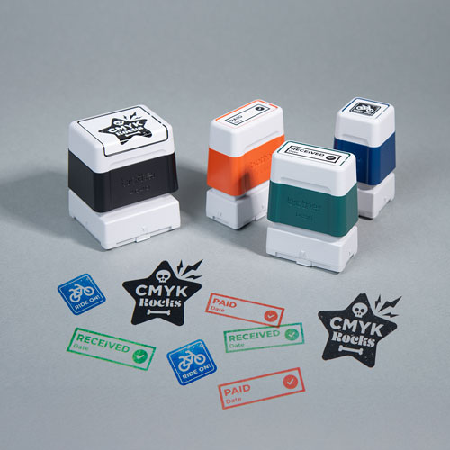 Create your own custom rubber stamp in a variety of sizes and ink colors.