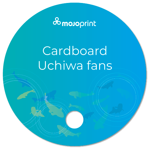 200mm in diameter, these round uchiwa fans are made of sturdy cardboard stock so they won't bend in the breeze! Die-cut with a push-out 25mm hole for the thumb, they are easily held and make an attractive, must-have campaign item for the hot summer months.