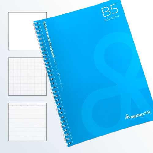 Choose from pre-printed lined, grid/graph, or blank internal pages (printed on 70kg uncoated), with your own full color original covers.