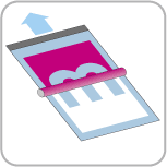 Next, the ink roller applies oil-based ink to the plate. The thick, oily ink is applied by special vibrating rollers which distribute the ink thinly and evenly. When the ink roller comes into contact with the wet plate, the ink only adheres to the untreated parts of the plate.