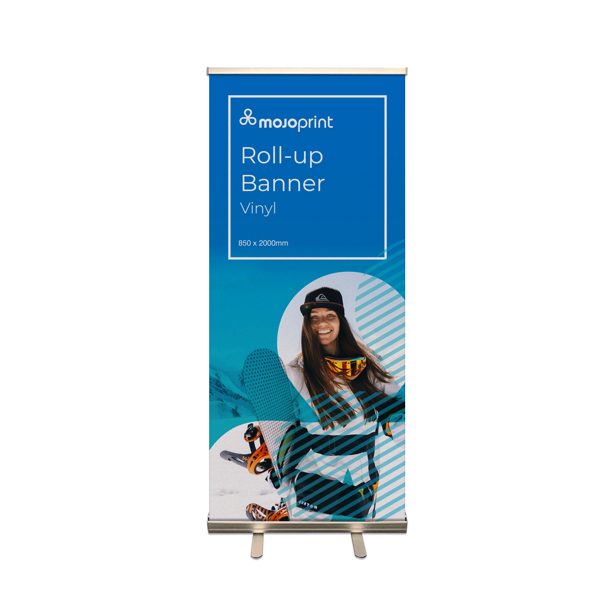 Budget-friendly, compact roll-up event banners printed on vinyl