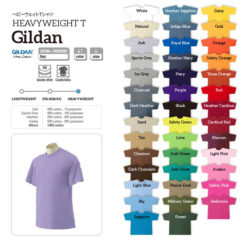Note: The Gildan shirt uses US sizing - running about one size larger than JP sizing