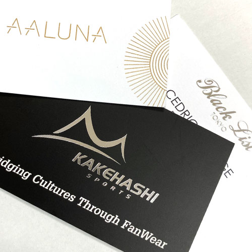 An eye-catching metallic foil stamping is applied to one side of these premium paper cards.